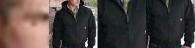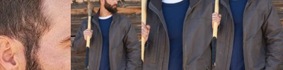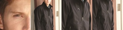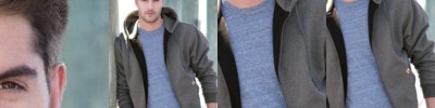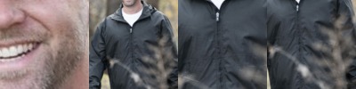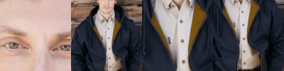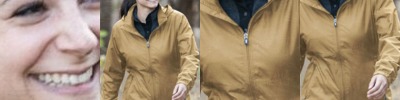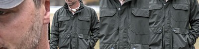 - Three-piece hood with collar stand and interior adjustable drawcord