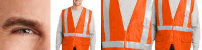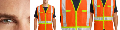 Built for surveyors or anyone who needs the highest ANSI visibility, this breathable, comfortable two-tone vest has short sleeves to meet ANSI 107 Class 3 requirements. 100% polyester mesh for breathability 100% polyester tricot exterior pockets for durability and easy decoration Durable, reflective 2-inch tape meets ANSI 107 requirements and provides 360-degree visibility on body and sleeves Two-tone contrast polyester tricot fabric under reflective tape; contrast binding Left chest bellows pocket with flap and hook and loop closure Two layered right chest pockets: one open, one divided Two lower front flap pockets with hook and loop closures Interior open lower mesh pockets on both sides Mic clip at left chest for easy access Molded center front zippered closure This garment must be fully zipped to be in compliance with ANSI 107 standards