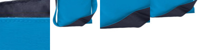 - Two-tone contrast fabric under reflective tape and contrast binding