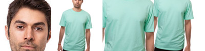 5.5 oz., 100% organic cotton fiber; Made in USA; Shoulder seam clean-finished with self-fabric tape; Side-seam construction; Double-needle coverstitched seams; Tear away label; External woven clamp label;
