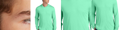Take the lead in this high-performance long sleeve hoodie with exceptional UV protection and moisture wicking. 4-ounce, 100% polyester interlock with PosiCharge ® technology UPF rating of 50 Tear-away label Set-in sleeves