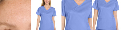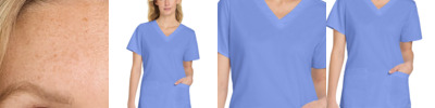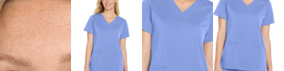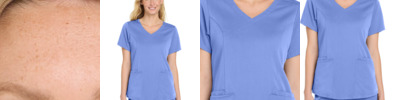 96/4 rayon/spandex Round neckline Wink heat transfer logo at hem Trim fit to easily layer under scrub tops without extra bulk