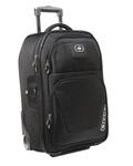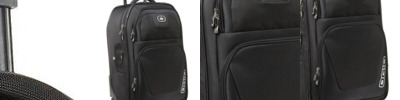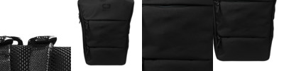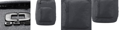 Textured poly weave Drawcord at opening to cinch closed Exterior pockets Interior organizer pockets Padded laptop compartment Metal snap buckle closure Metal OGIO zipper pulls with rubber coating Integrated padded luggage trolley pass through on back Laptop sleeve: 16.3'h x 12.5'w; fits most 15' laptops Dimensions: 18'h x 12.5'w x 6.2'd Capacity: 976 cu.in./16 L Weight: 1.5 lbs./0.68 kg Note: Bags not intended for use by children 12 and under.