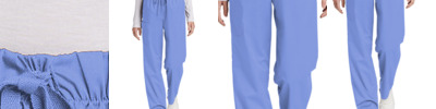65/35 poly/cotton Mechanical stretch Flat front full drawstring and half-back elastic waistband Front slash pockets Right side cargo pocket Single back pocket Moderate flare leg with side vents 33-inch inseam Wink heat transfer logo at cargo pocket Classic fit