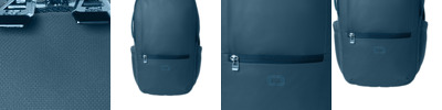 400D x 400D recycled RPET ballistic poly PU/600D ballistic poly 200D recycled RPET poly debossed lining Large main compartment with interior mesh pockets Dedicated laptop compartment Interior mesh gear pockets and headphone storage Interior office Vertical zippered front pocket Zippered front bottom pocket Expandable side pockets Luggage trolley pass through on back Padded top and side grab handles Padded air mesh shoulder straps with webbing and stash pocket Raised O icon heat transfer on front Laptop sleeve dimensions: 18.5'h x 12'w; fits most 18' laptops Dimensions: 19'h x 12'w x 8'd Capacity: 1,220.5 cu. in./20 L Weight: 2.6 lbs./1.2 kg Note: Bags not intended for use by children 12 and under.