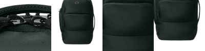 200D poly wave dobby PVC 200D recycled RPET poly mini grid dobby PU Padded wrap handle Interior left and right mesh storage pockets Contrast tipped webbing Zippered front pocket Removable, adjustable padded shoulder strap with black reflective OGIO heat transfer Luggage trolley pass through on back Padded foam bottom for strength Black reflective O icon heat transfer on front Dimensions: 12'h x 21'w x 12'd Capacity: 2,685 cu. in./44 L Weight: 1.43 lbs./0.7 kg Note: Bags not intended for use by children 12 and under.